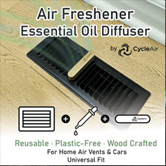 Our Cycle Air Refillable Air Freshener Diffuser offers a sustainable alternative. Designed to be compatible with both home HVAC systems and car air vents, this diffuser provides a versatile and eco-friendly solution. Its refillable nature means you can use it repeatedly, significantly reducing the need for disposable air fresheners. Simply attach the diffuser to your air vent, fill it with your choice of essential oils, and enjoy a continuous, pleasant scent throughout your home or vehicle. The adjustable fragrance intensity ensures a customizable experience, allowing you to control the scent level to your preference by adding as much or as little of your own essential oil. Ideal for smaller rooms, we recommend one air freshener diffuser per AC vent in the room - that's because larger rooms have more air, so will need more essential oil scent for best results.